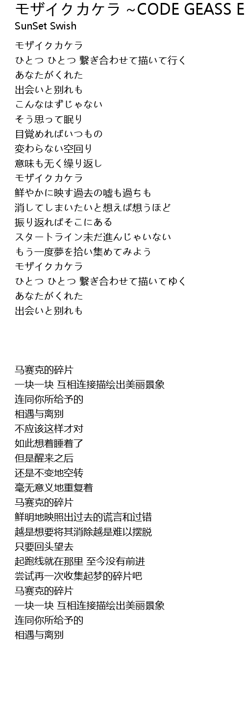| Song | モザイクカケラ ~CODE GEASS Endeing Ver.~ |