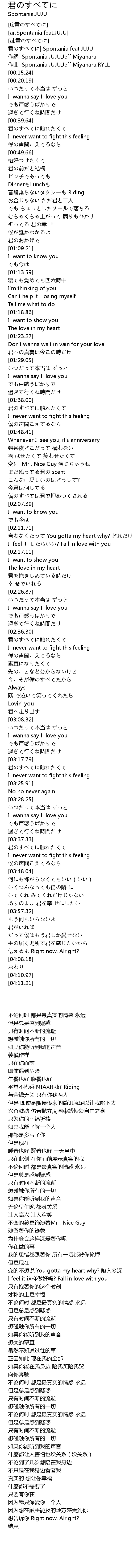 | [00:00.86] | 君のすべてに| Spontania feat.JUJU |