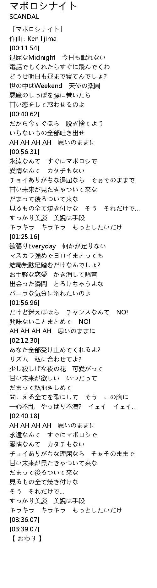 | [00:03.79] | 「マボロシナイト」 |