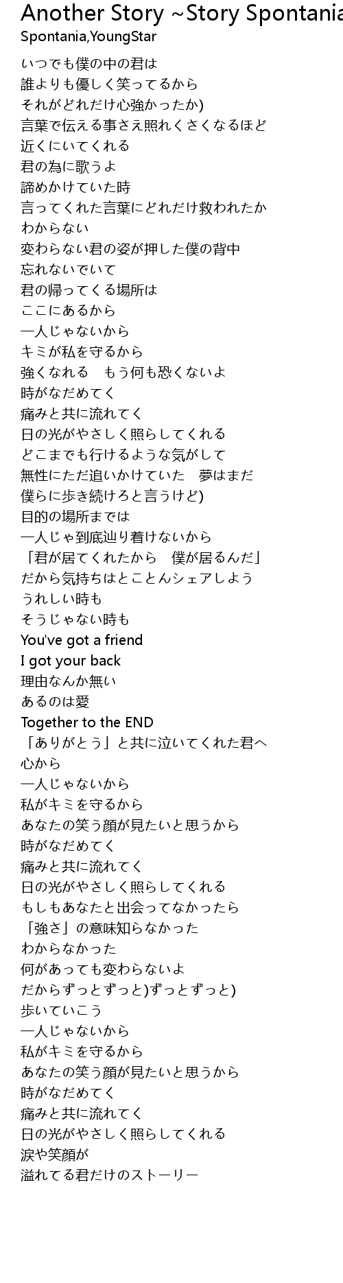 | [01:42.93] | 「君が居てくれたから 僕が居るんだ」 |