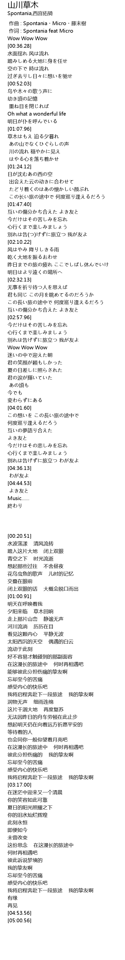 | [00:01.00] | zuò cí : Spontania feat Micro |