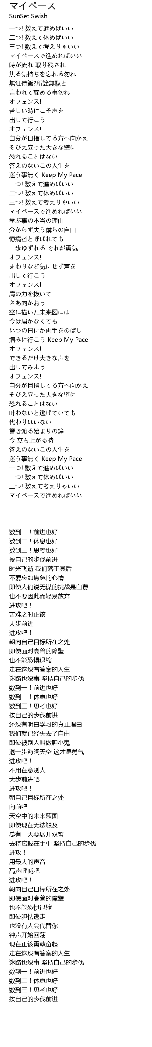 | [03:50.400] | 迷う事無く Keep My Pace |