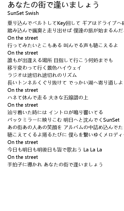 | 手拍子に導かれ あなたの街で逢いましょう |