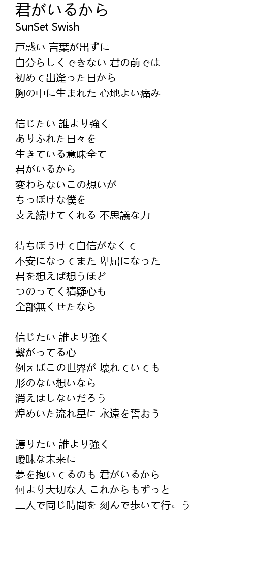 | Song | 君がいるから |