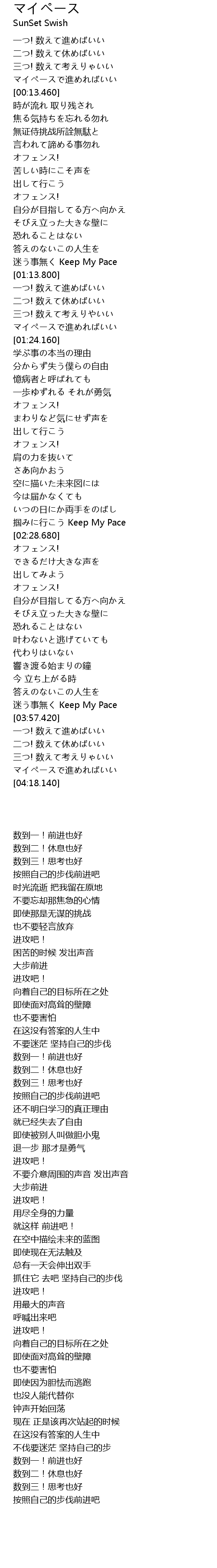 | [03:50.400] | 迷う事無く Keep My Pace |