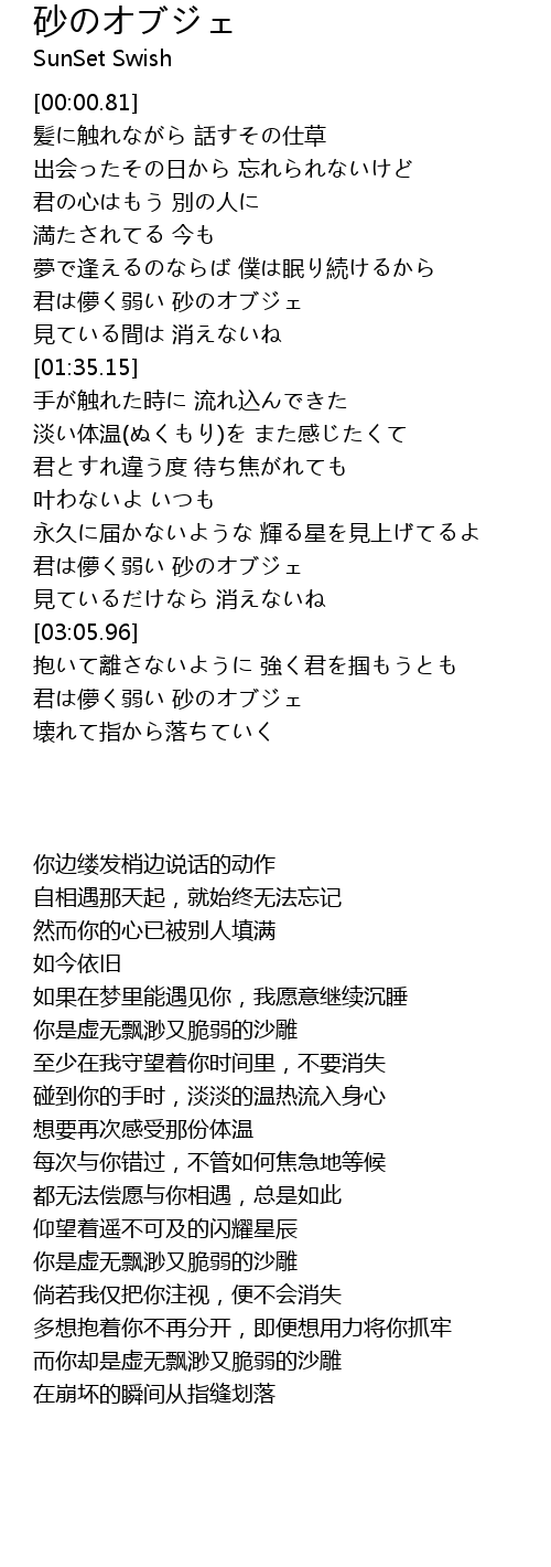 | [03:42.00] | 君は儚く弱い 砂のオブジェ |
