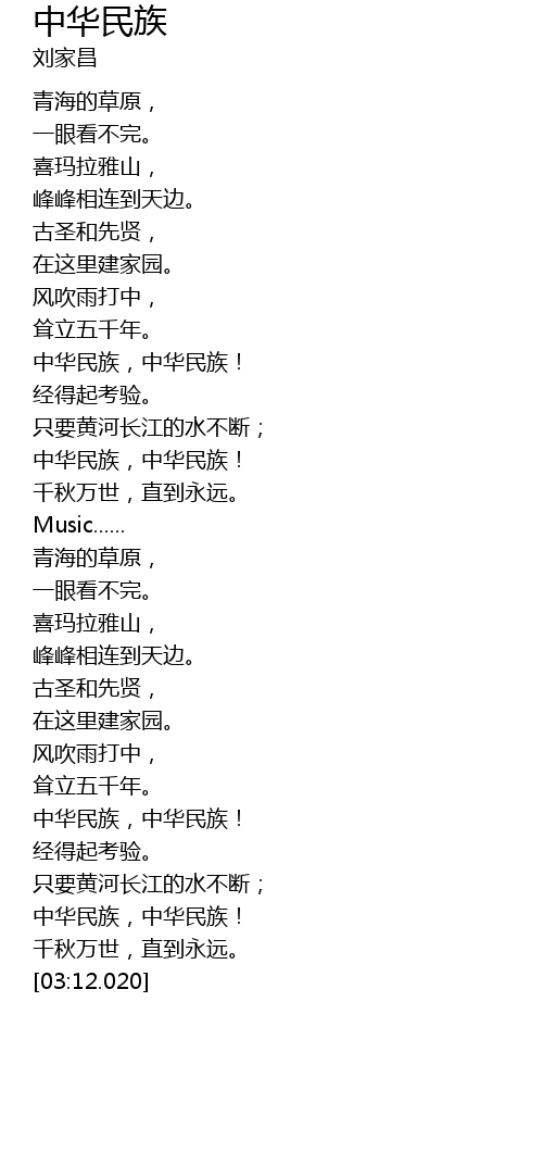 | [02:54.410] | zhong hua min zu, zhong hua min zu! |