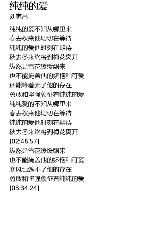 | [02:03.93] | 纯纯爱的不知从哪里来 |
