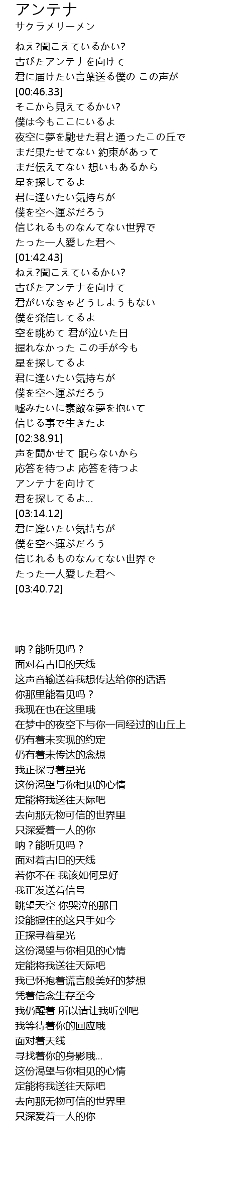 | [03:03.85] | アンテナを向けて |