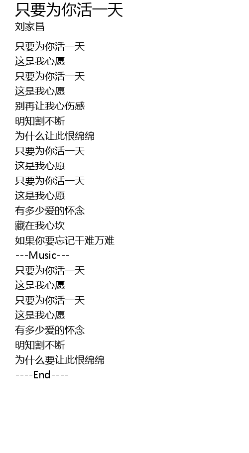 只要为你活一天 zhi yao wei ni huo yi tian Lyrics