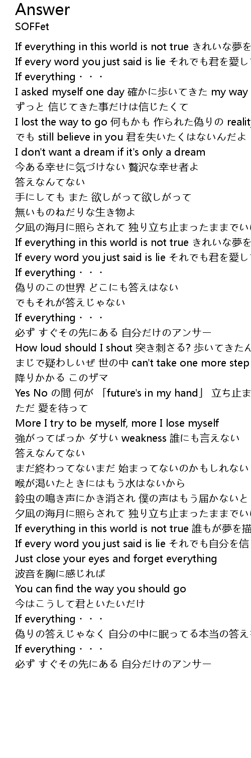 | 偽りの答えじゃなく 自分の中に眠ってる本当の答えを | |