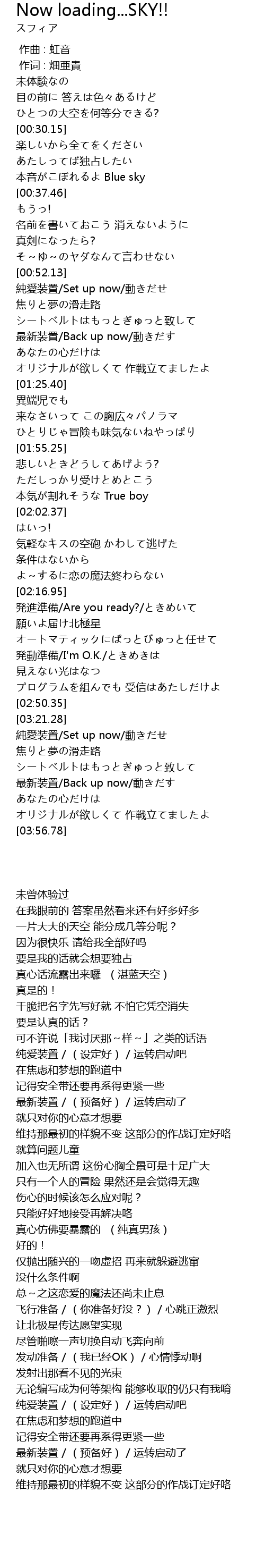 | [02:17.72] | 発進準備/Are you ready?/ときめいて |