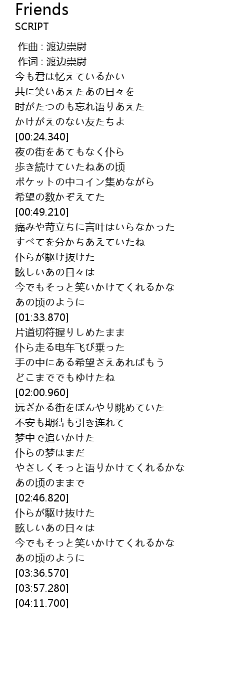 | [00:00.390] | 作词 : 渡边崇尉 |