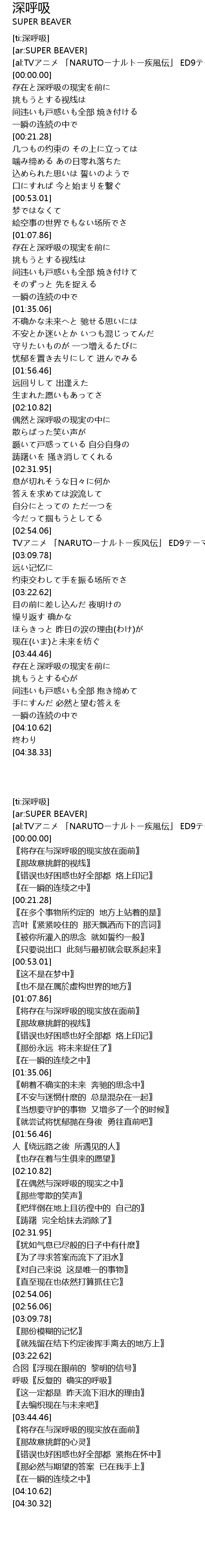 | [02:56.06] | TV NARUTO jí fēng chuán ED9 |