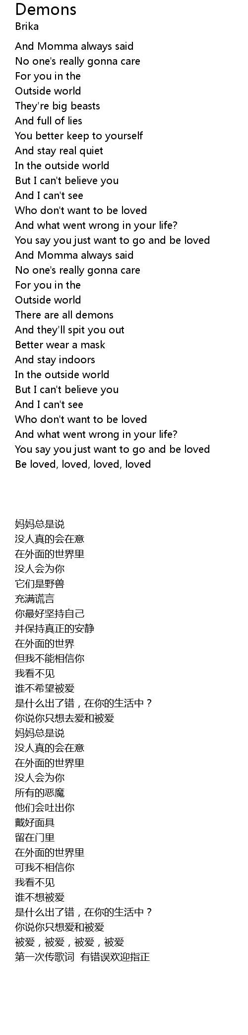 Demons Lyrics