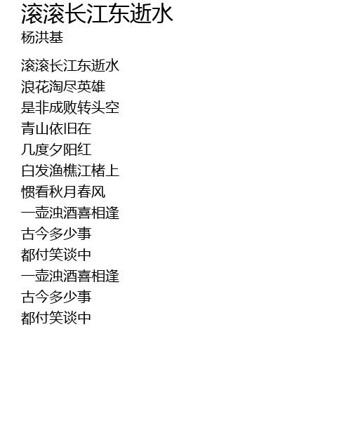 | [01:14.630] | gǔn gǔn cháng jiāng dōng shì shuǐ |