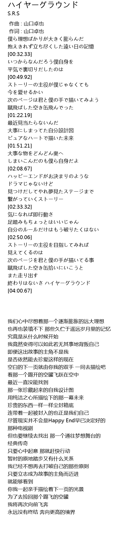 | [03:52.63] | 終わりはないさ ハイヤーグラウンド |