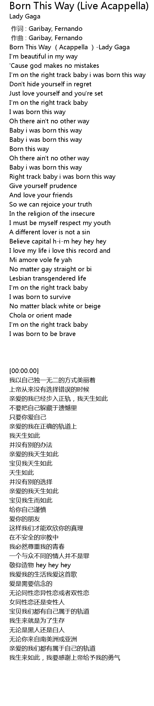 | [00:00.00] | Born This Way Acappella Lady Gaga |