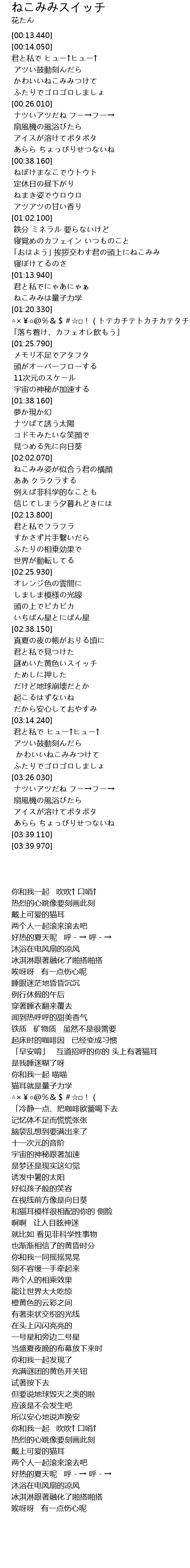 | [01:14.490] | 君と私でにゃあにゃぁ |