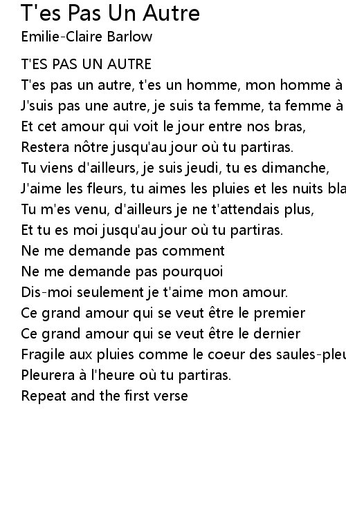 | Tu viens d' ailleurs, je suis jeudi, tu es dimanche, | |