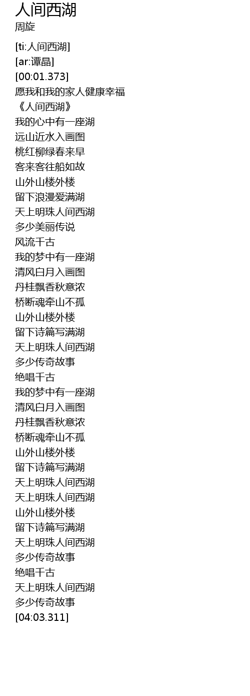 | [03:51.228] | tiān shàng míng zhū rén jiān xī hú |
