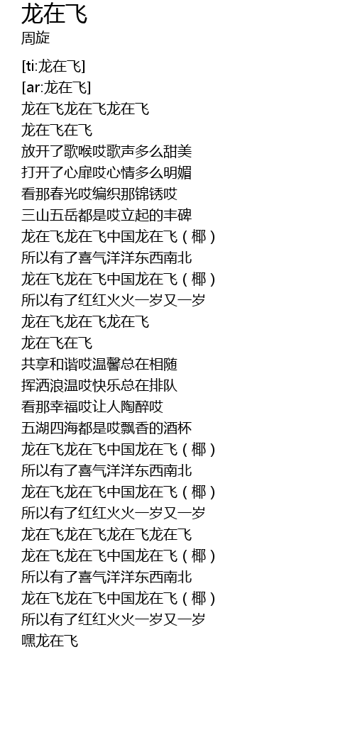 | [01:34.04] | 龙在飞龙在飞中国龙在飞(椰) |
