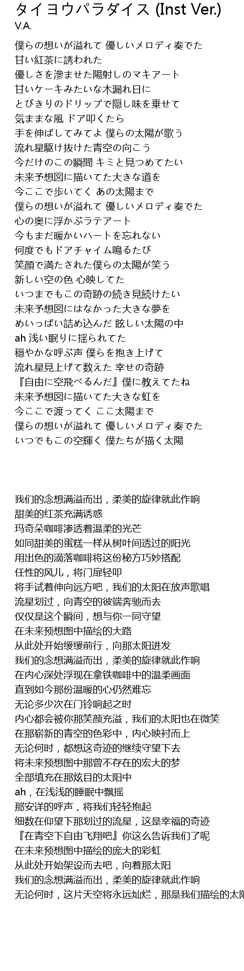 | Song | タイヨウパラダイス (Inst Ver.) |