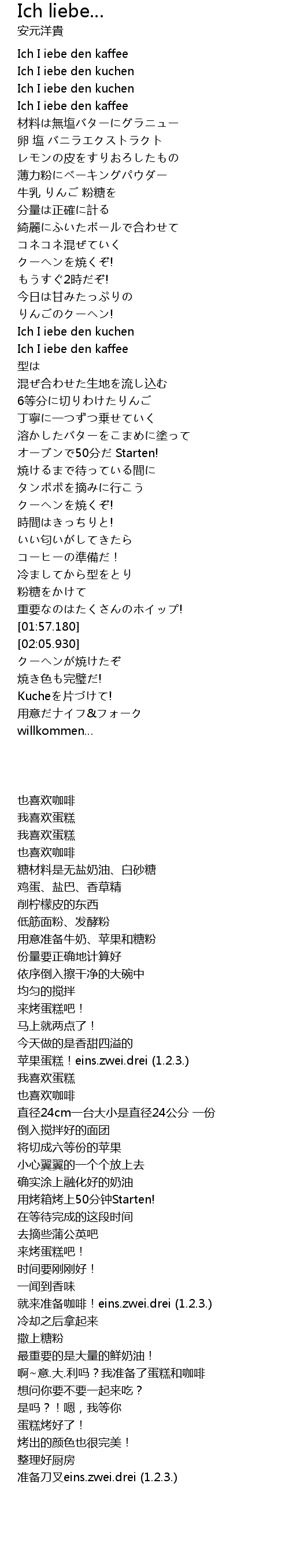 | [00:00.000] | Ich I iebe den kuchen |