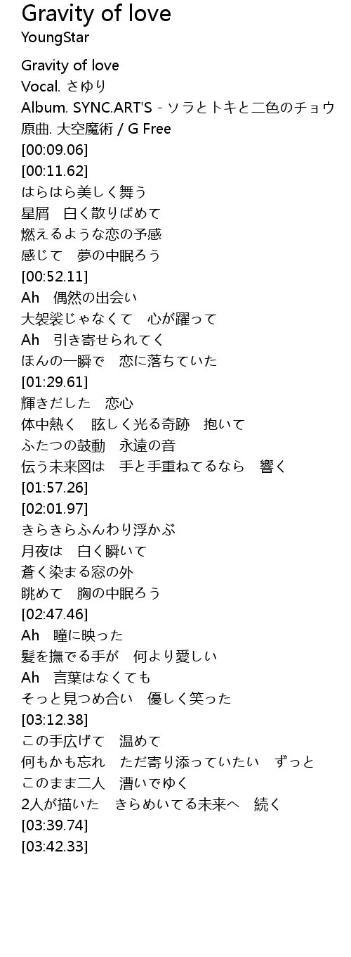 | [00:04.76] | Album. SYNC.ART'S - ソラとトキと二色のチョウ |