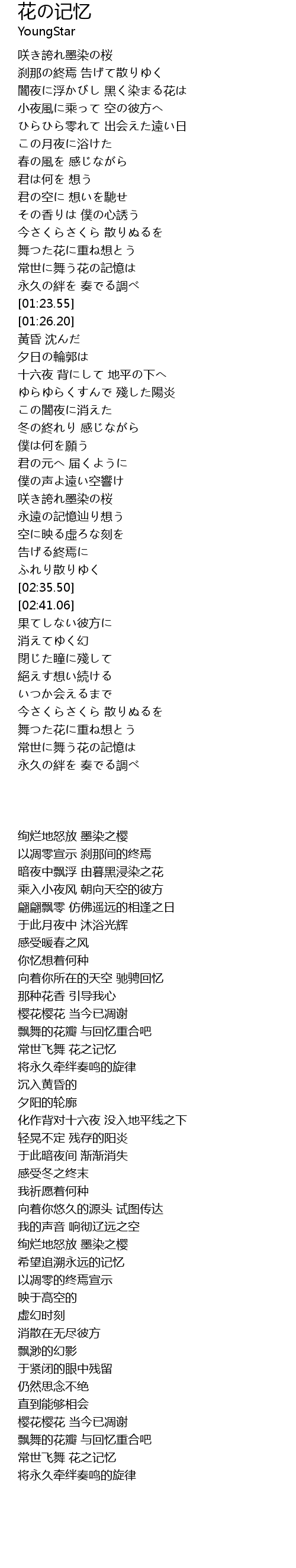 | [02:13.72] | 咲き誇れ墨染の桜 |