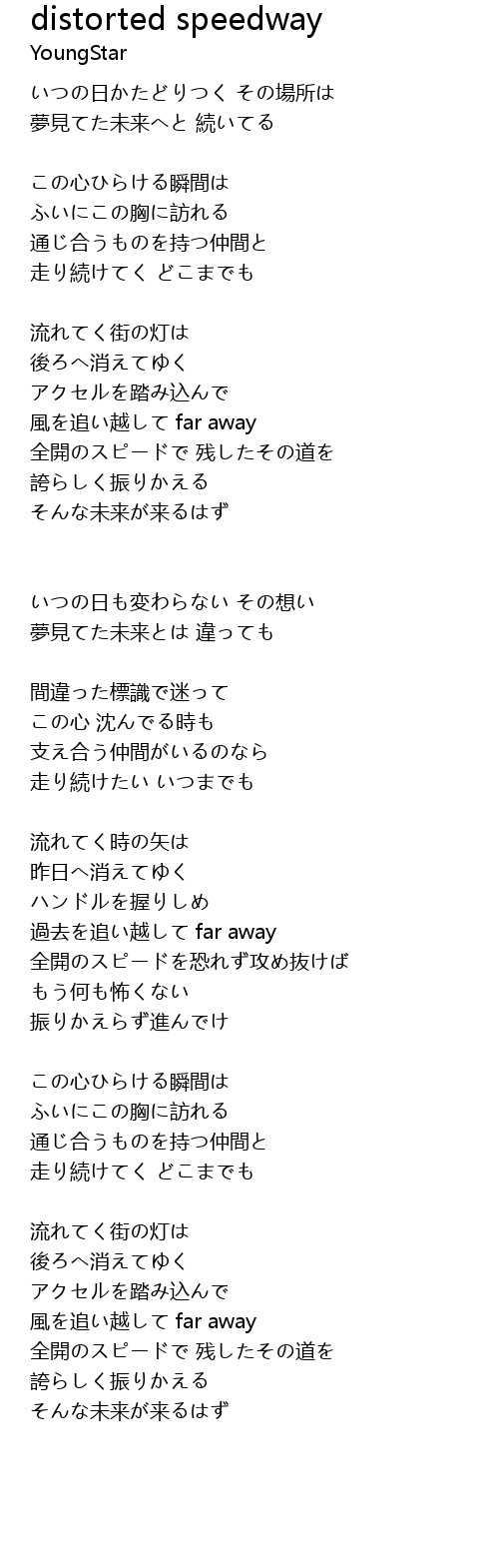 distorted speedway Lyrics
