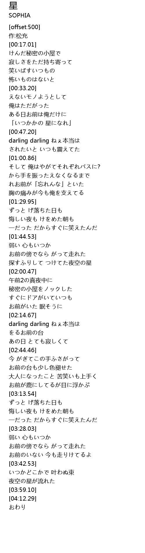 | [00:43.63] | 「いつかかの 星になれ」 |