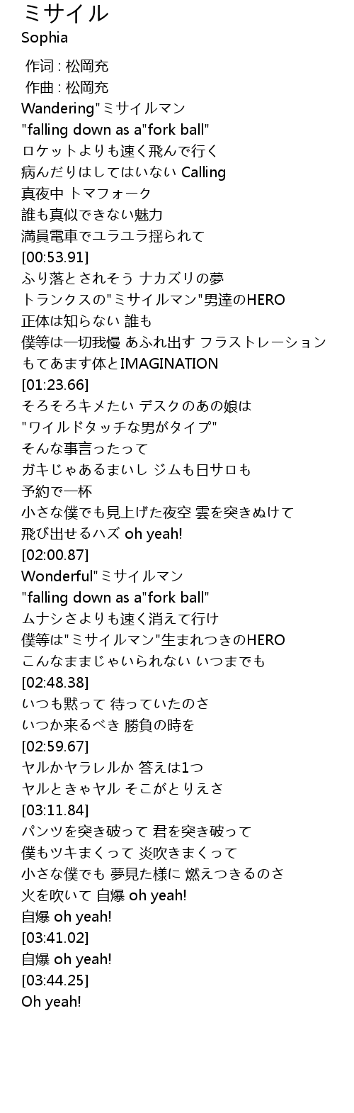 | [02:24.48] | Wonderful"ミサイルマン |