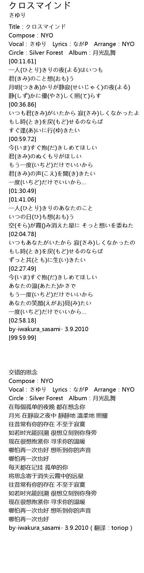 | [00:00.00] | Title:クロスマインド |