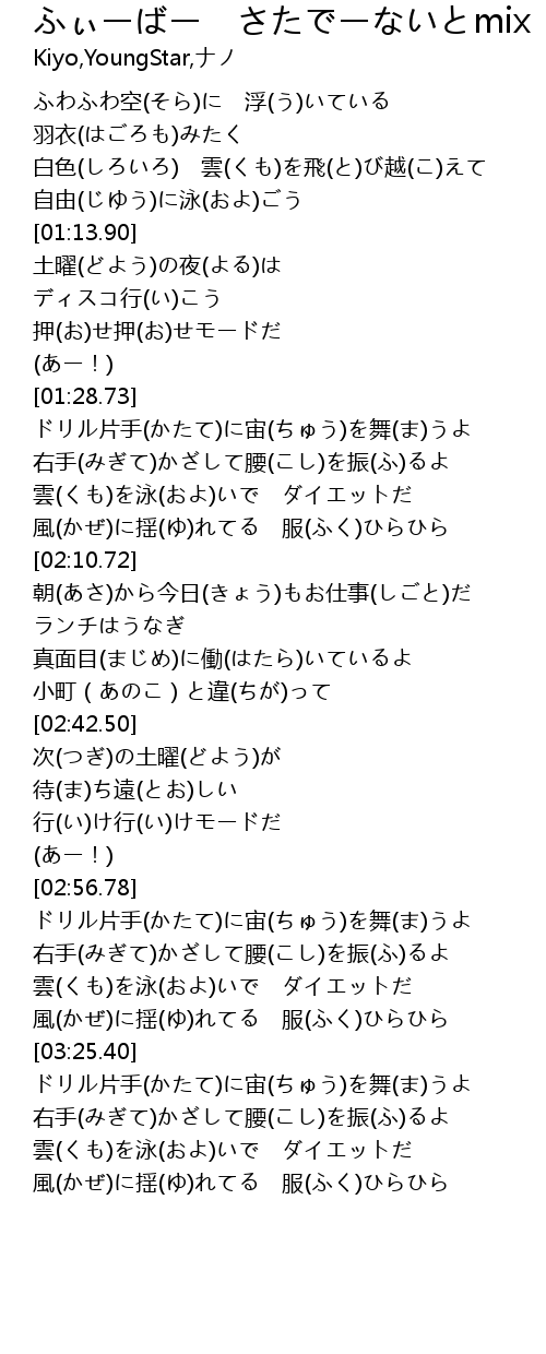 | [00:59.85] | ふわふわ空(そら)に 浮(う)いている |