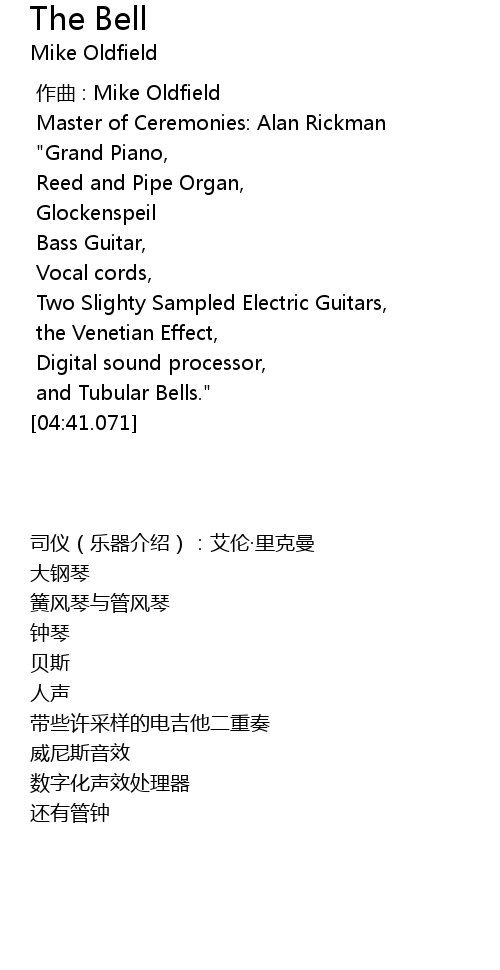 | [00:00.000] | 作曲 : Mike Oldfield |