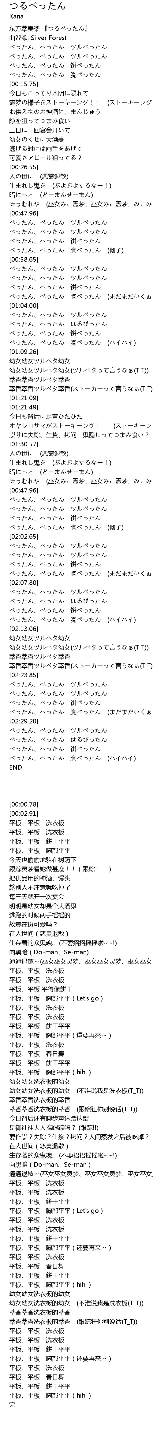 | [00:00.78] | 东方萃奏楽 『つるぺったん』 |