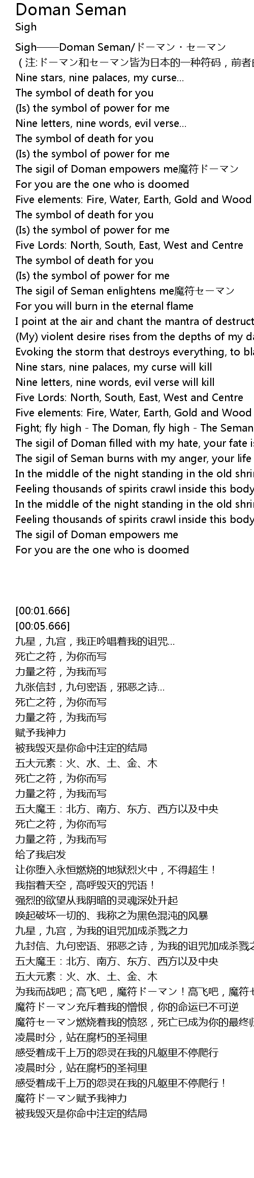 | [02:10.131] | The sigil of Seman enlightens me mó fú |