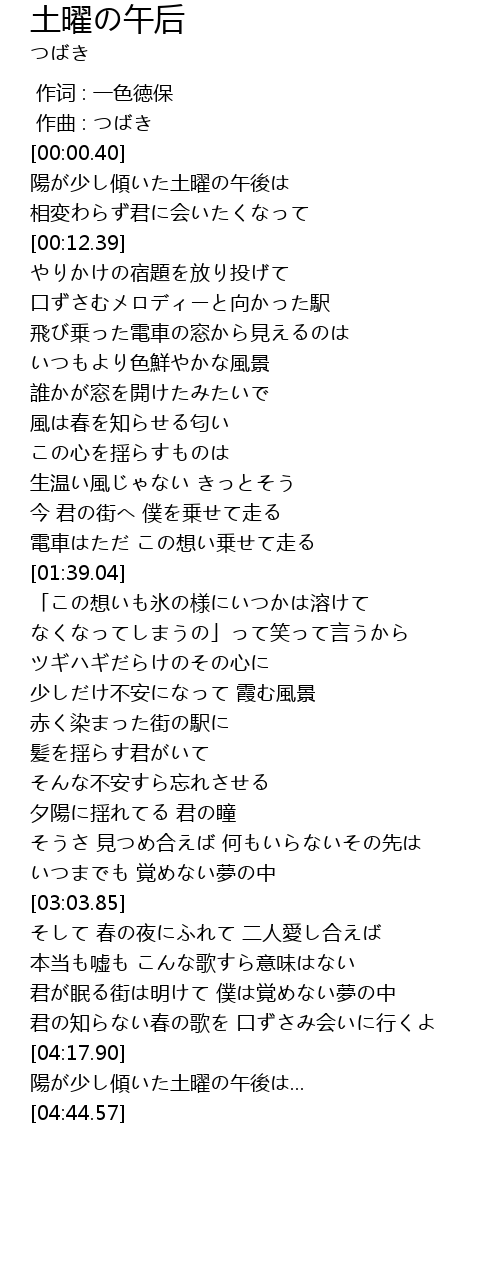 | [04:38.05] | 陽が少し傾いた土曜の午後は... |
