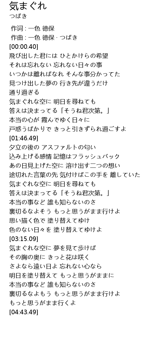 [03:40.02] 気まぐれな空に 夢を見て歩けば