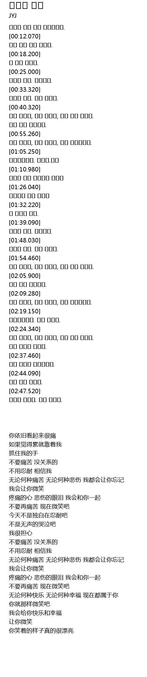 | [02:19.960] | 아프지말아요. 이젠 웃어요. |