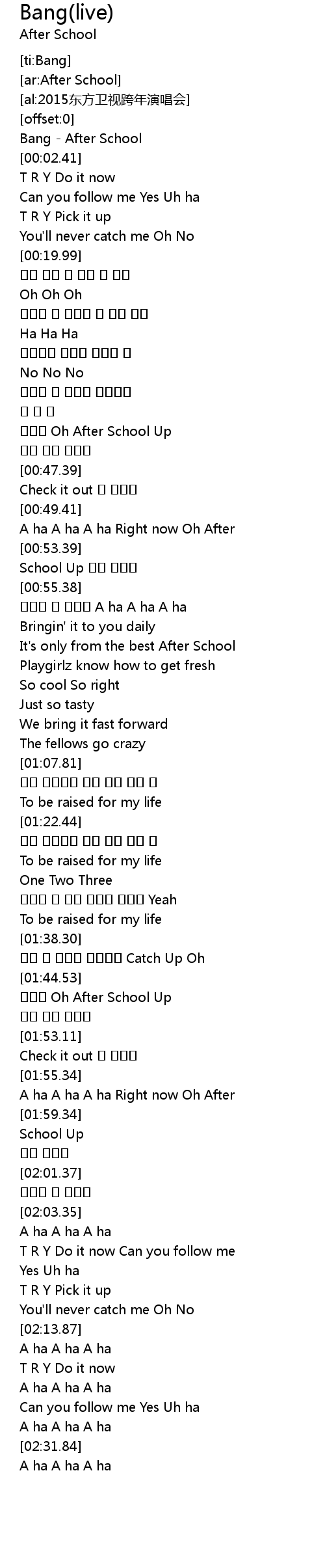 | [00:00.63] | Bang - After School |
