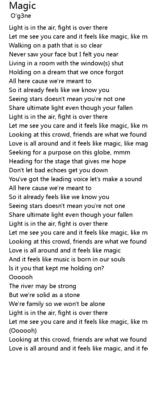 | Love is all around and it feels like magic, and it feels like magic, magic |