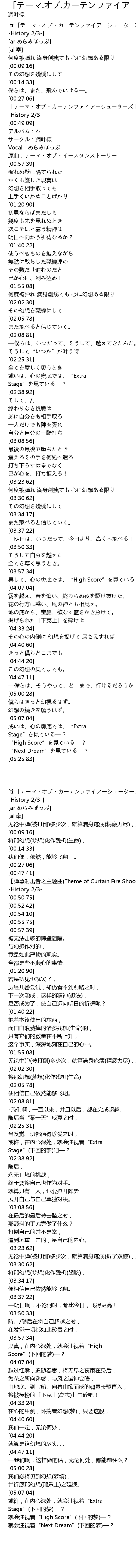 | [ti:「テーマ・オブ・カーテンファイアーシューターズ」 -History 2/3-] | |