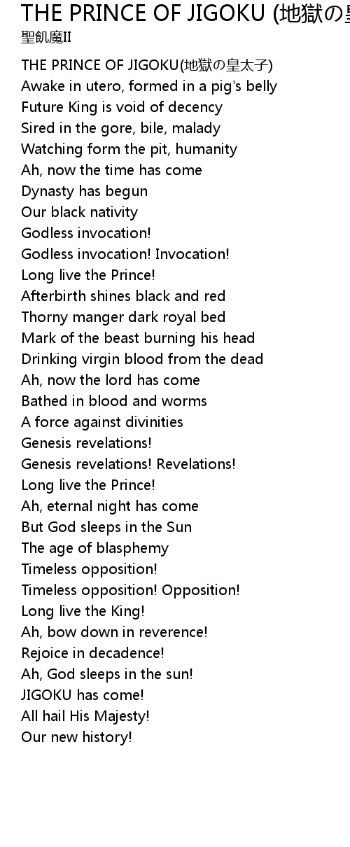 | [00:00.22] | THE PRINCE OF JIGOKU(地獄の皇太子) |