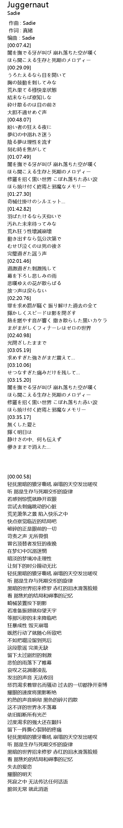 | [00:00.00] | 作曲 : Sadie |