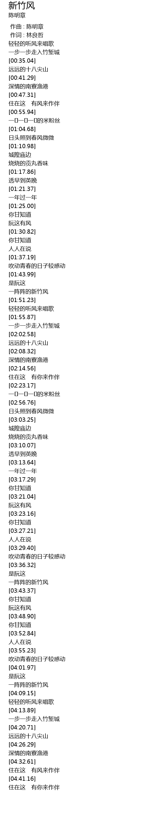 | [04:05.59] | yī zhèn zhèn de xīn zhú fēng |