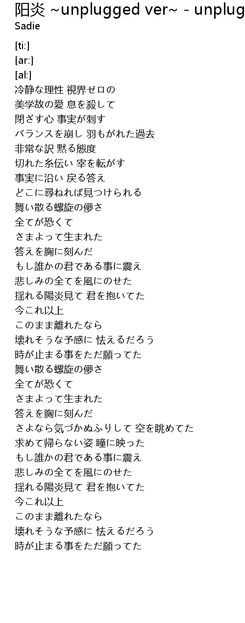 | [01:58.87] | 揺れる陽炎見て 君を抱いてた |