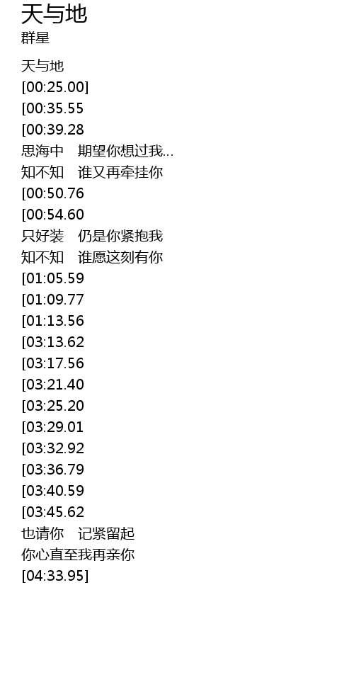 | [03:50.25][03:17.56][01:24.27] | 才是得到天与地 |