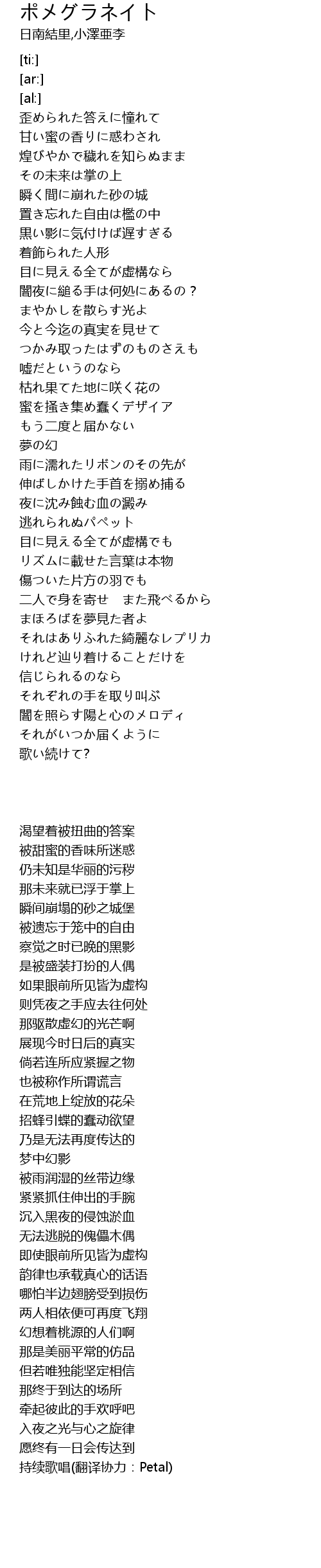 | [03:34.53] | 闇を照らす陽と心のメロディ |
